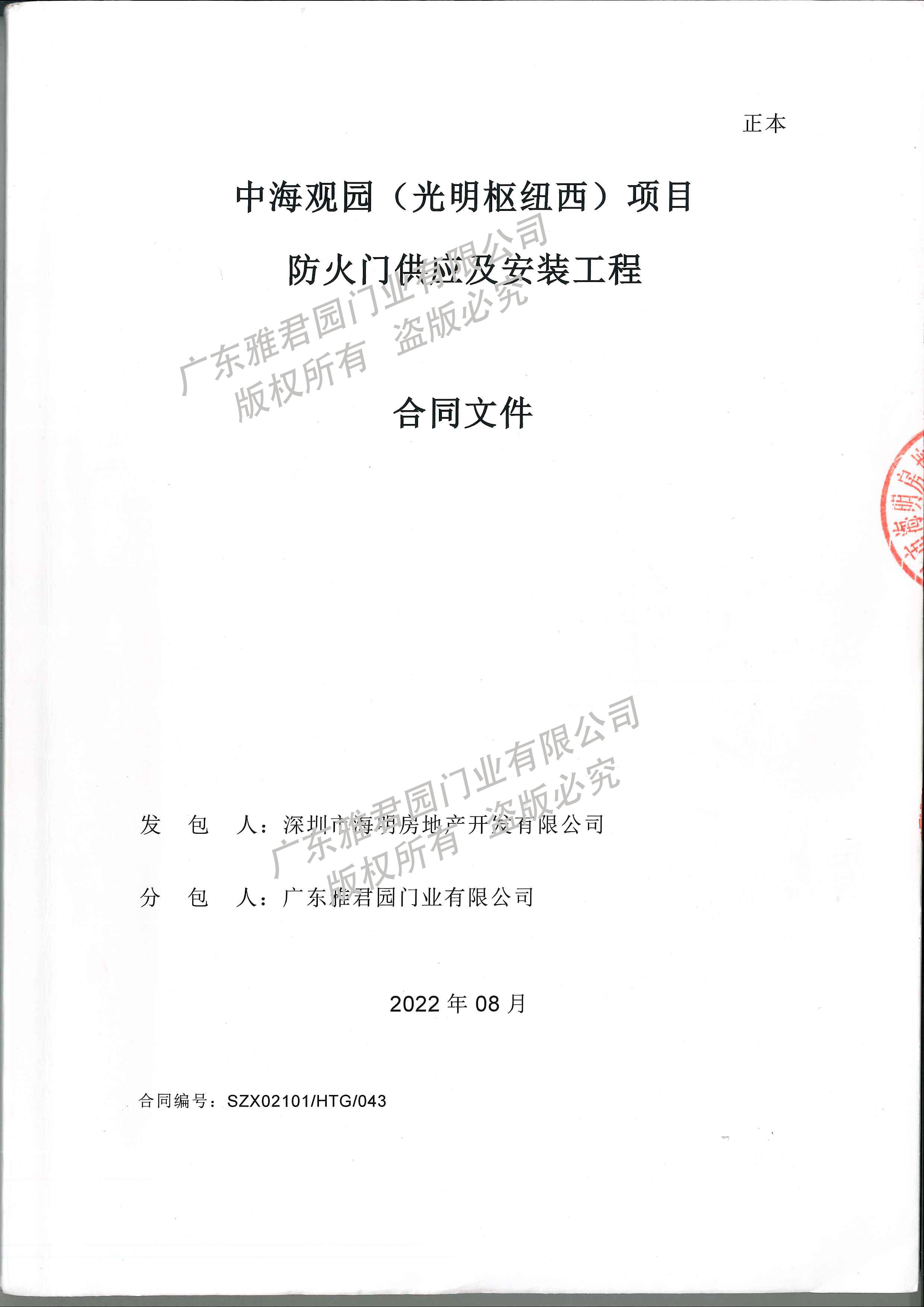 廣東雅君園門業(yè)有限公司是專業(yè)設(shè)計、生產(chǎn)、安裝防火、防盜系列產(chǎn)品的大型股份制企業(yè)。雅君園現(xiàn)有廣州、新疆、湖北三大生產(chǎn)基地,公司現(xiàn)有員工800多人,現(xiàn)代化廠房6萬平方米,大批進口設(shè)備和生產(chǎn)流水線,計算機網(wǎng)絡(luò)管理系統(tǒng)和高素質(zhì)的管理隊伍,形成了年產(chǎn)20萬樘各類門的生產(chǎn)能力。在廣東省、海南、湖南、廣西、新疆等地具有很高的行業(yè)知名度和美譽度。主導產(chǎn)品安裝防火門、防火卷簾門、防火玻璃門、防盜門、防火玻璃構(gòu)件、防火防盜門、裝甲防撬門、復合防盜門、格柵門、室內(nèi)門、車庫門、自動伸縮門、自動感應門、防火卷簾電控箱、常開防火門自動關(guān)閉控制器、不銹鋼制品和鋁合金制品等十大系列上百個品種。